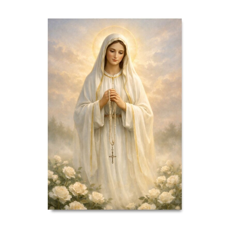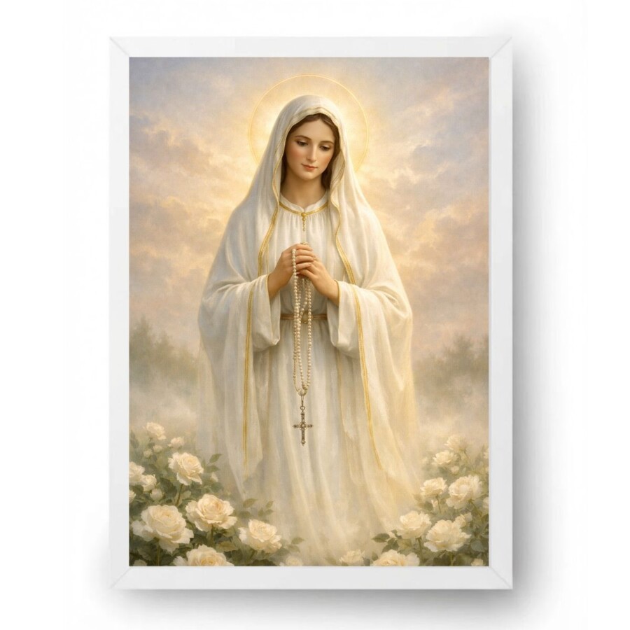 Quadro Nossa Senhora de Fátima Orando Floral