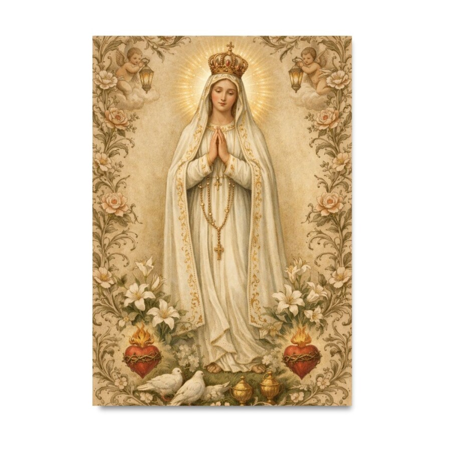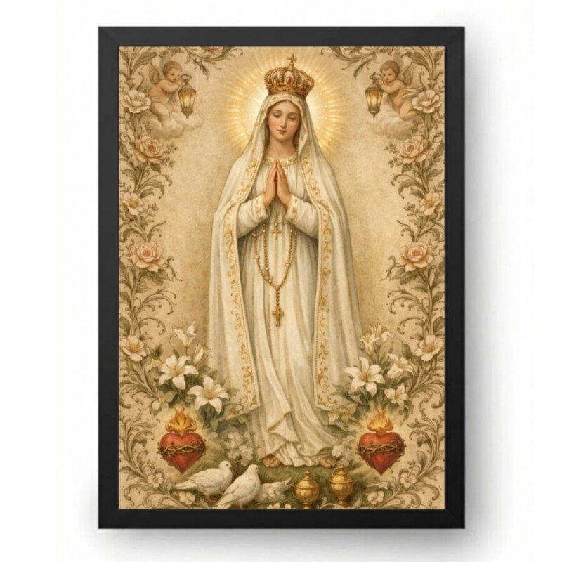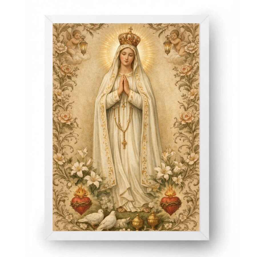 Quadro Nossa Senhora de Fátima Terço Orando