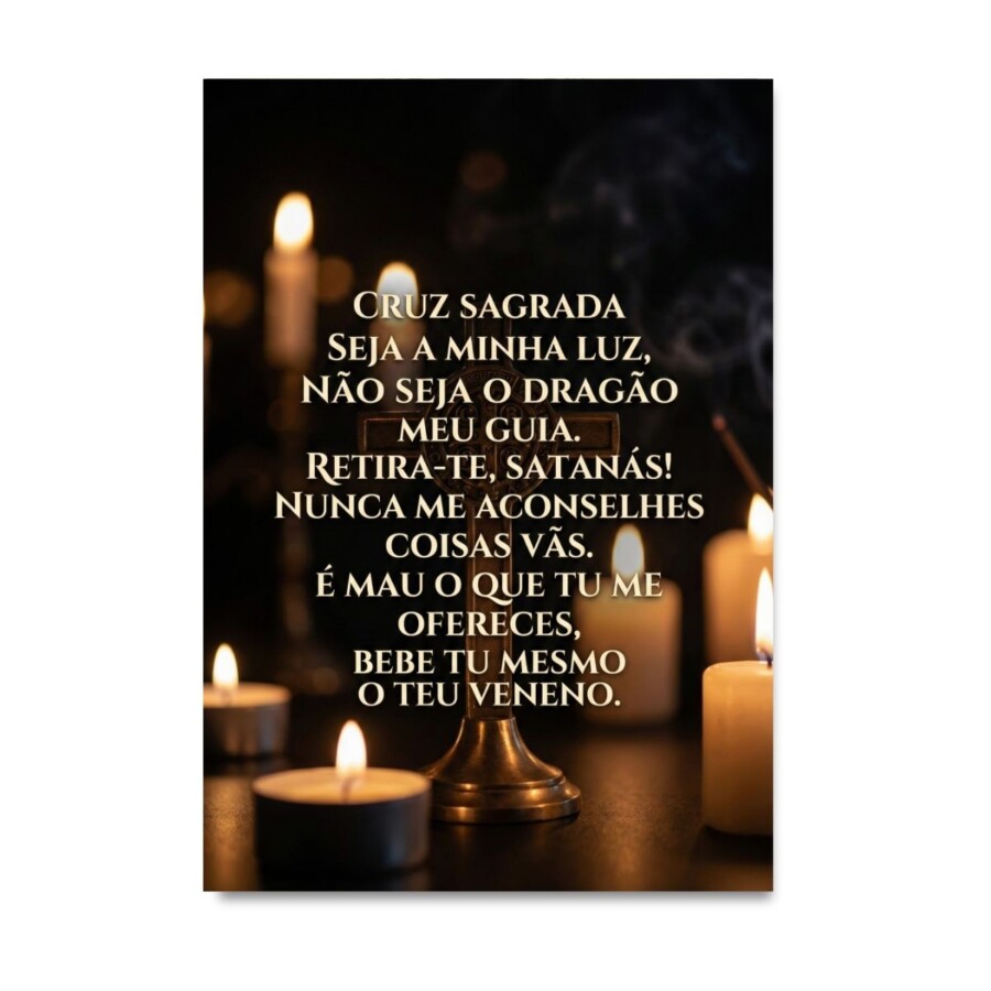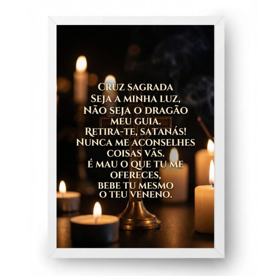Quadro São Bento Oração da Cruz Sagrada Fundo Velas