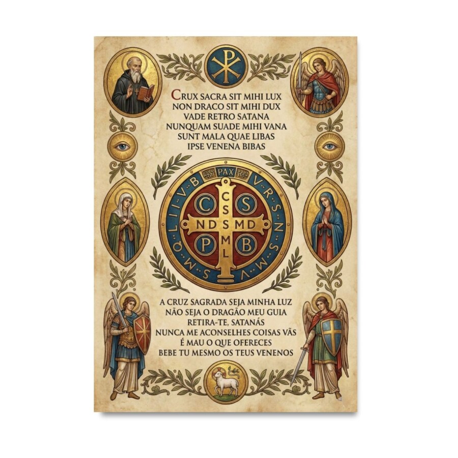 Quadro São Bento Oração da Cruz Sagrada Latim e Em Português